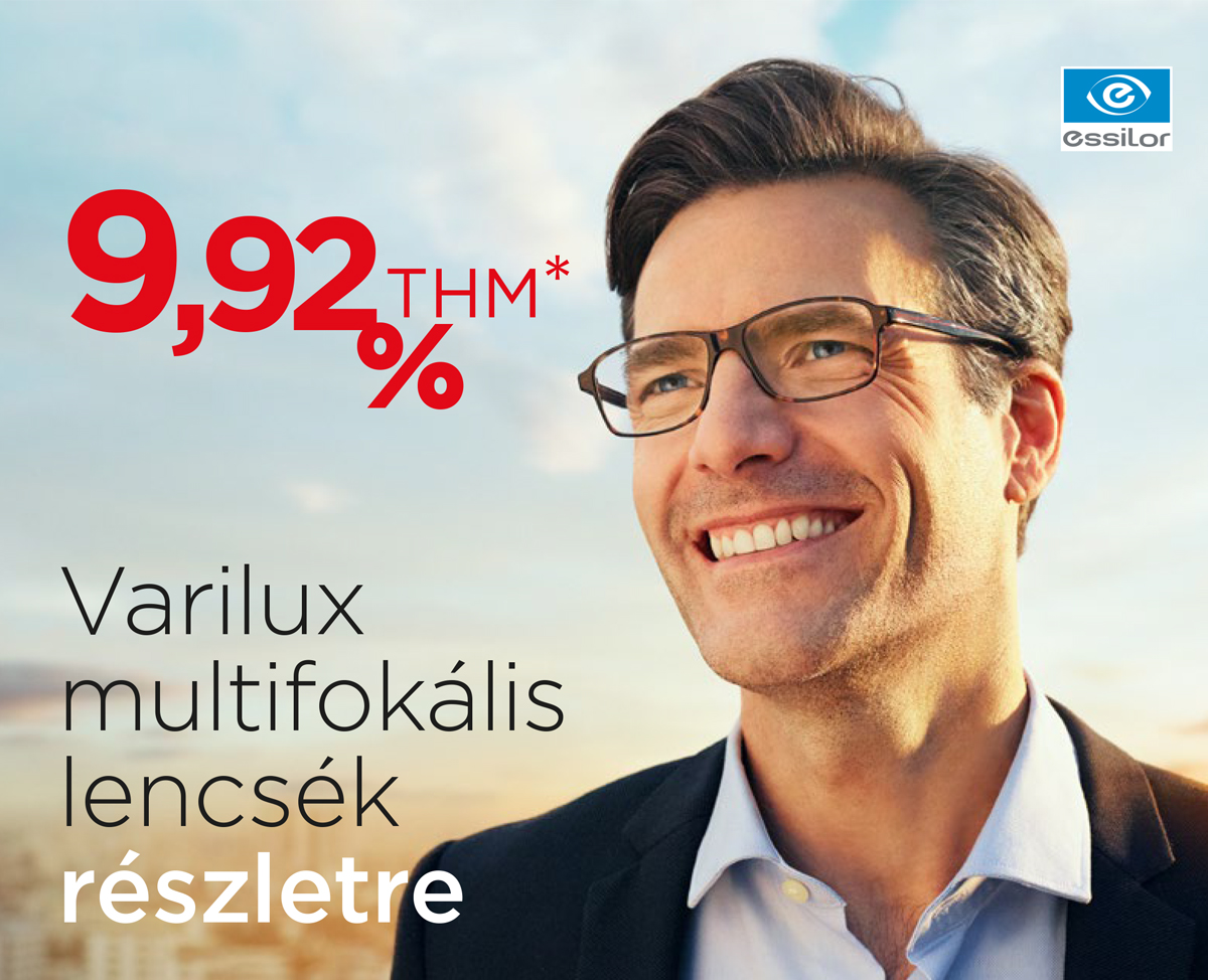 Áruhitel Referencia THM: 0% 2 000 000 Ft hitelösszeg és 6, illetve 10 hónap futamidő esetén. Futamidő: 6 vagy 10 hónap. Az igényelhető hitelösszeg: 25 000 Ft-tól 2 000 000 Ft-ig terjedhet. Szükséges önrész, a vételár függvényében: 200 000 Ft-ig önrész nélkül, 200 001 Ft-tól 300 000 Ft-ig min. a vételár 10%-a, 300 001 Ft-tól min. a vételár 20%-a. Az Essilor Optika Kft. partnerei a Magyar Cetelem Zrt. (Bank) hitelközvetítői, a Bank a hitelbírálathoz szükséges dokumentumok meghatározásának, a hitelbírálatnak a jogát fenntartja, valamint az ajánlati kötöttségét kizárja. Az Essilor Optika Kft. partnereiről, akik a Magyar Cetelem Zrt. (Bank) hitelközvetítői, tájékozódjon a következő webcímen: http://www.szemuveghitel.hu. További részletek az áruhitel pultnál, az általános szerződési feltételekben és a vonatkozó hirdetményekben. https://www.cetelem.hu/segedlet/dokumentumok. Érvényes 2019. december 31. , az üzletben megjelölt termékekre.